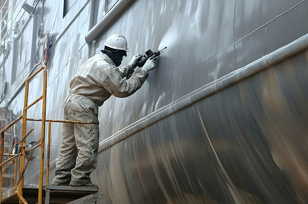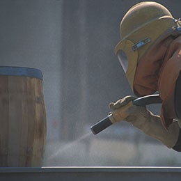 Avant de commencer, la surface est soigneusement nettoyée et les zones sensibles sont protégées afin qu’elles ne soient pas affectées par le jet abrasif. De plus, certaines parties de la surface, qui ne doivent pas être sablées, sont protégées à l’aide de rubans adhésifs ou de masques spécifiques.